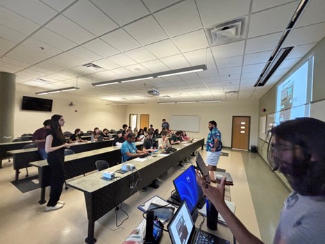Ronan, Arian explain LEWIS technology at Stamm Room to over 50 high school students to start the semester strong. Best LEWIS instructors.