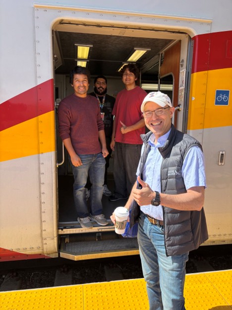 Bryan, Solaiman, Sergio and Ronan conducted the test on the railrunner which became a classroom again! Now we plan to use it in the fall for the steel design midterm. Exam on wheels definitely makes you move. Best high school students on wheels!