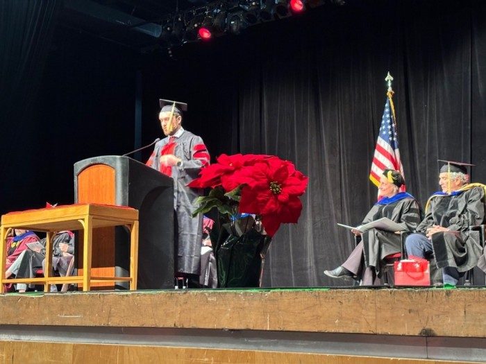 Eric Robbins delivers the UNM SOE graduation ceremony talk! Great job and we are all proud of your accomplishments Eric! Best of luck at Sandia National Lab with your postdoc in Nonlinear Dynamics and come teach a lecture or two for UNM soon!