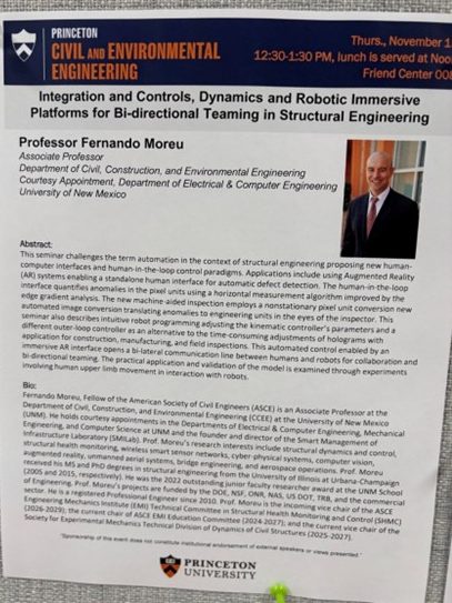 Mahsa Sanei, Wyatt Saeger, Piedad Miranda and Dr. Moreu presented at ASCE EMI this year a total of 8 conference papers; chairing 6 mini-symposiums: (3) education and AI, (2) SHM and AI, (2) human-machine interaction. We also organized the first ever ASCE EMI open mic event to introduce new members to technical committees, student competitions, journal of mechanical engineering, and other initiatives to grow our community. A great opportunity to transform and serve our engineering mechanics (and dynamics) community!