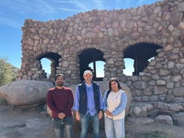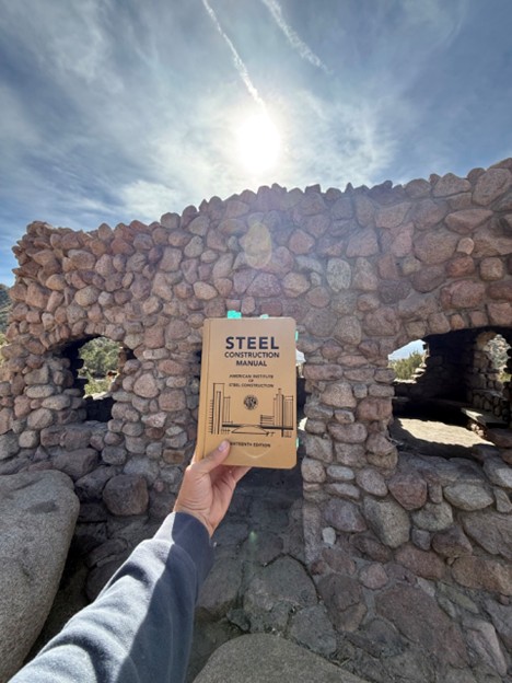 Sujata and Tayab taking some measurements at the foothills to investigate the steel structure and develop their report. Great day! Also, we had Joe visiting and showing off his AISC manual at the site!